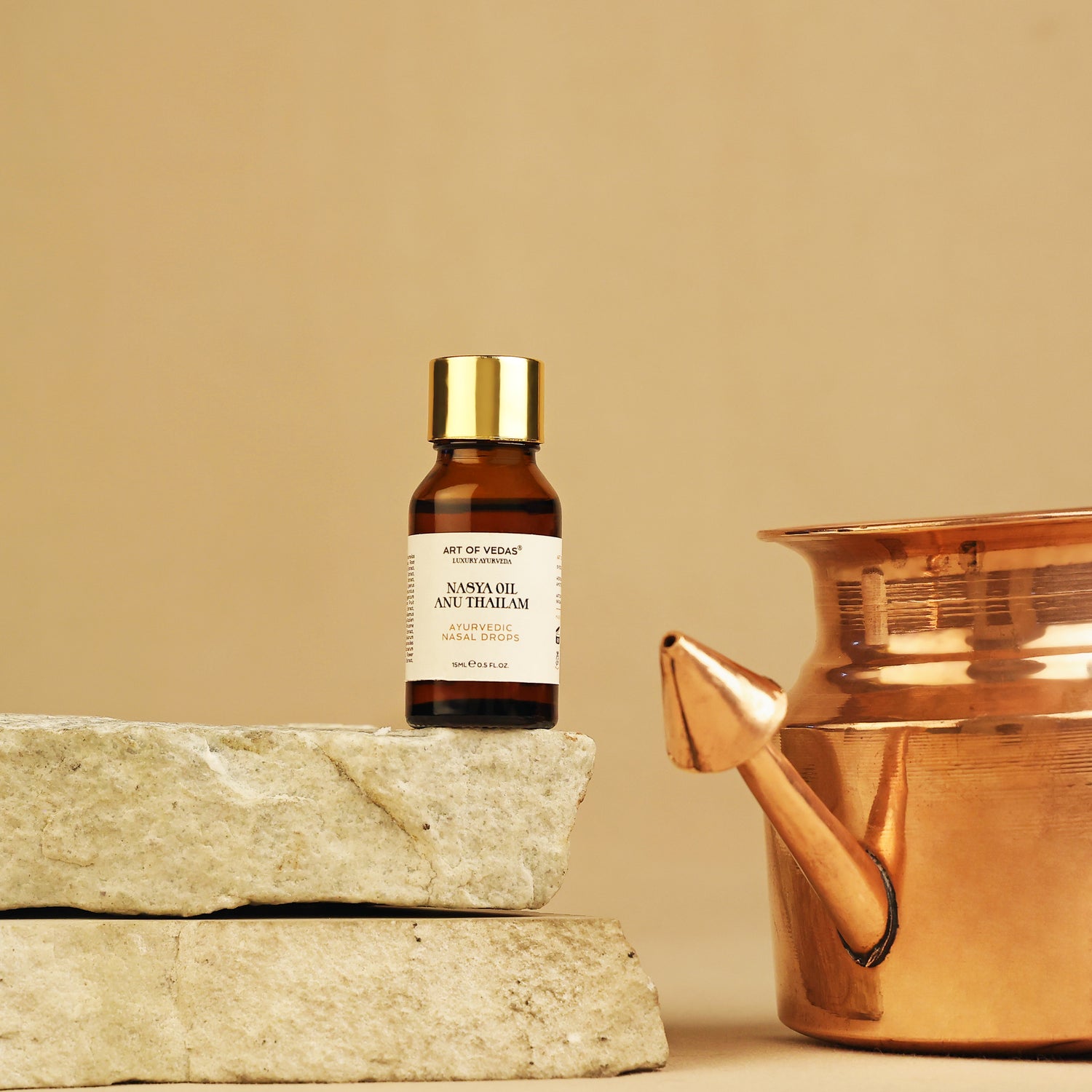 Terapiallinen nenäöljy, joka on suunniteltu avaamaan nenäkäytävät, parantamaan hengitystä ja tukemaan mielen kirkautta. Säännöllinen käyttö auttaa voitelemaan ja suojaamaan nenäkäytäviä samalla kun tasapainottaa Vata- ja Kapha-doshoja.